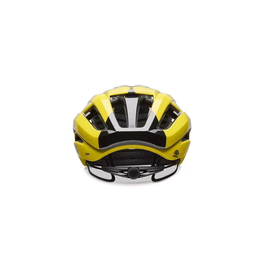 Aries Spherical je ľahšia, rýchlejšia a odvetranejšia než kedykoľvek predtým. Profil bol zmenšený na minimum, aby sa čo najlepšie prispôsobil tvaru hlavy. S nízkou hmotnosťou a 24 otvormi Wind Tunnel™ pre maximálne odvetranie je jazda s touto helmou neuveriteľne pohodlná. Ale to najlepšie je vo vnútri - technológia Spherical Powered by MIPS. Škrupina je zložená z dvoch pologulí spojených žltými elastomérmi. Celý systém vytvára akési odpruženie, ktoré absorbuje sily v prípade nárazu – pologule sa voči sebe môžu pohnúť a elastoméry tlmiaenergiu. Celou prilbou navyše prechádza špeciálna výstuha Aura Reinforcement Arch. Usadenie na hlave zaisťuje patentovaný upínací systém Roc Loc 5+ Air spolu s antimikrobiálnymi výstelkami Ionic+.