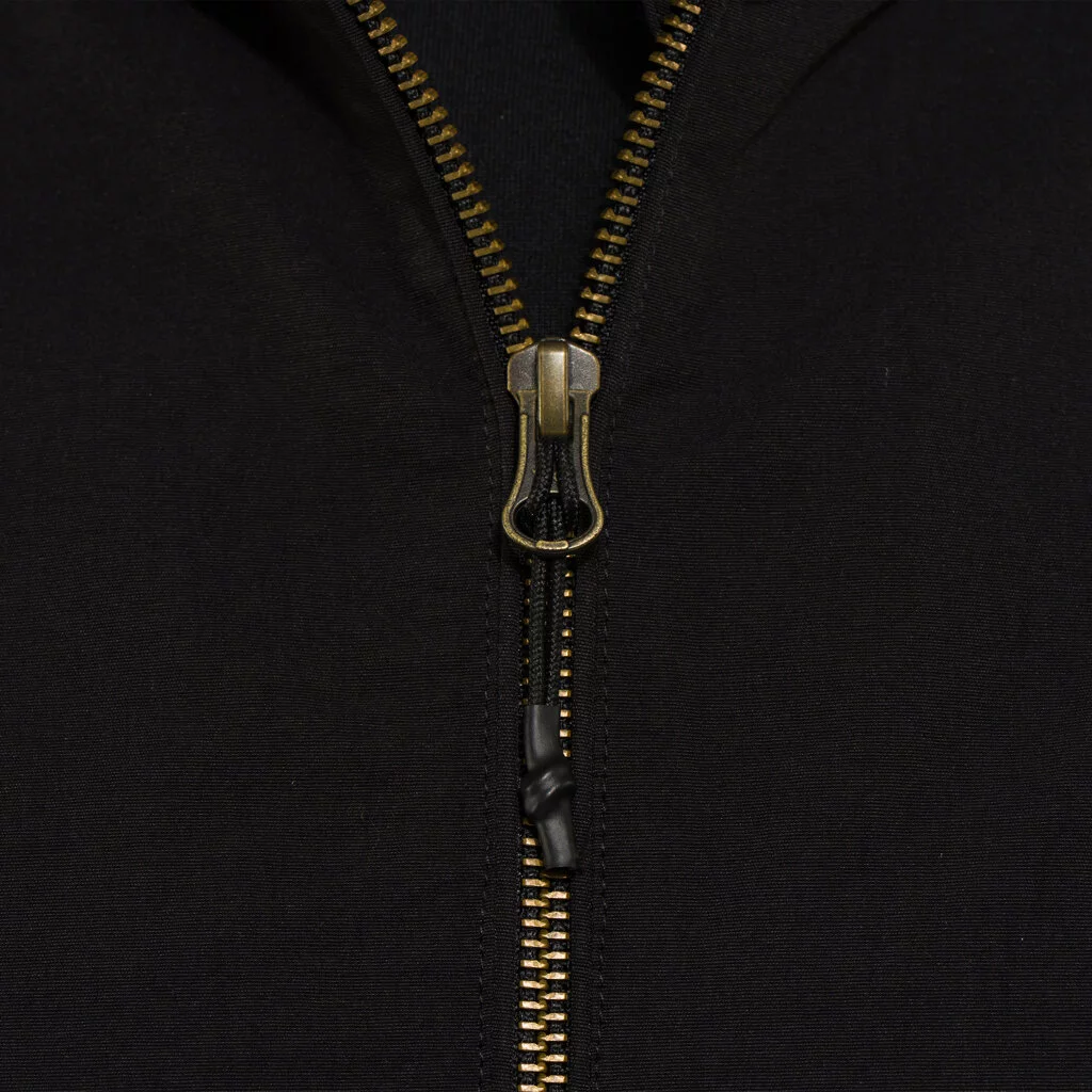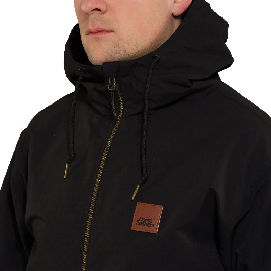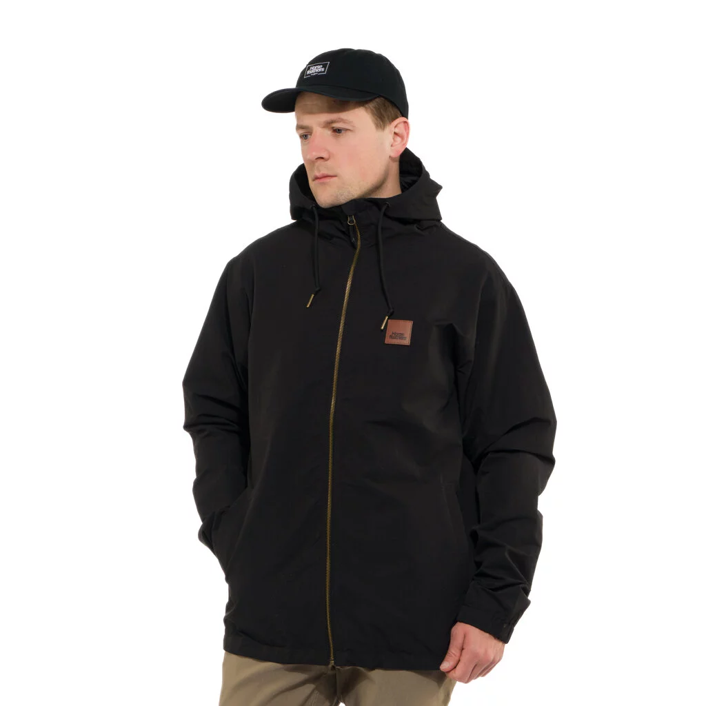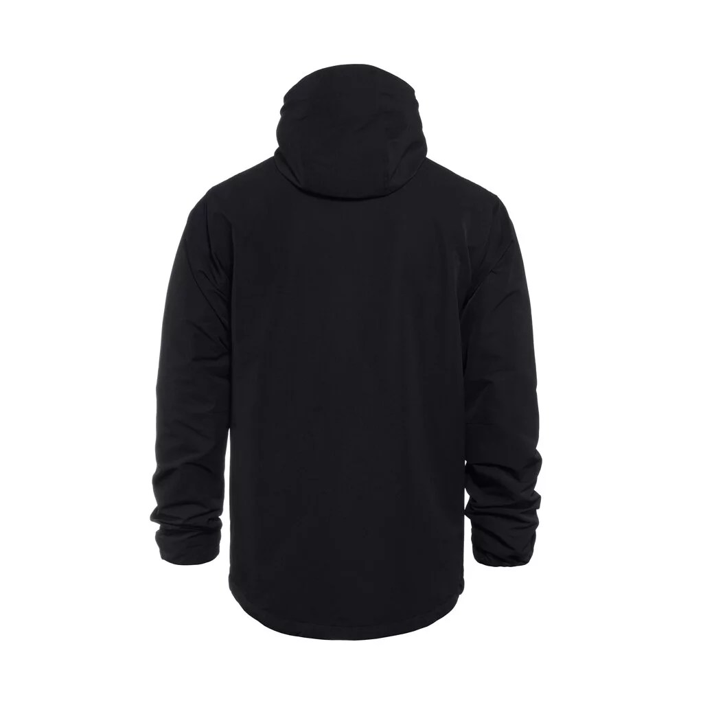 Nylonový materiál so spandexom poskytuje pohodlie a voľnosť pohybu, zatiaľ čo DWR úprava chráni pred ľahkým dažďom. Podšívka z počesaného trikotu, ergonomické rukávy a elastické lemy zaisťujú maximálny komfort.