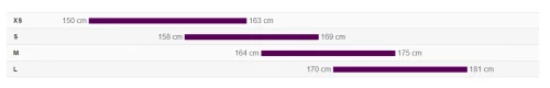 veľkosti XS (150 - 163 cm) / S (158 - 169 cm) / M (164 - 175 cm) / L (170 - 181 cm)