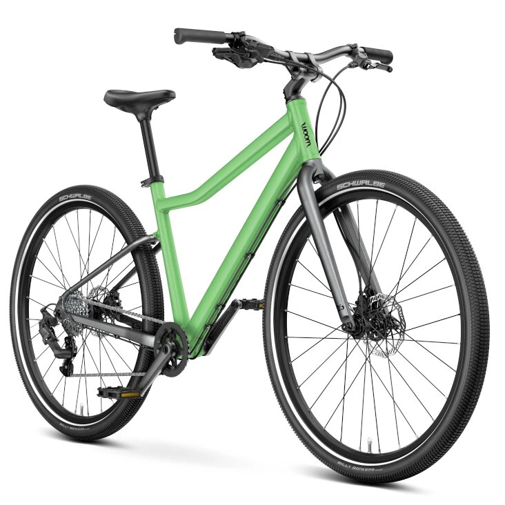 Detský bicykel WOOM Explore 6 je všestranný parťák pre deti vo veku približne 10 – 14 rokov (výška 140 – 165 cm). Vďaka ľahkému hliníkovému rámu so športovou geometriou ponúka skvelú ovládateľnosť aj komfort. Hydraulické kotúčové brzdy s nastaviteľnými páčkami zvládnu ľahko ovládať aj detské ruky. Osemstupňové páčkové radenie MicroShift Acolyte vám otvorí dvere do rôznych terénov. Plášte Schwalbe Billy Bonkers s univerzálnou vzorkou a šírkou 2,10″ prispievajú k pohodlnejšiemu jazdeniu aj po nerovnom povrchu. Ergonomické sedlo sintegrovanou sedlovkou a špeciálne gripy navrhnuté pre menšie ruky ďalej posilňujú pohodlie a bezpečie. Nastaviteľný predstavec so značkami A, B, C pomáha správnemu nastaveniu podľa výšky dieťaťa.